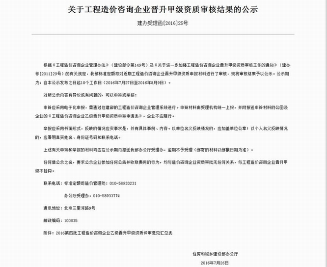 近期,住房和城乡建设部对工程造价咨询企业晋升甲级资质申报材料进行了审核,济南监理顺利通过此次审核并成功晋升工程造价咨询甲级资质,成功升甲推动了公司造价咨询能力的提升,为业务拓展提供了新的平台。