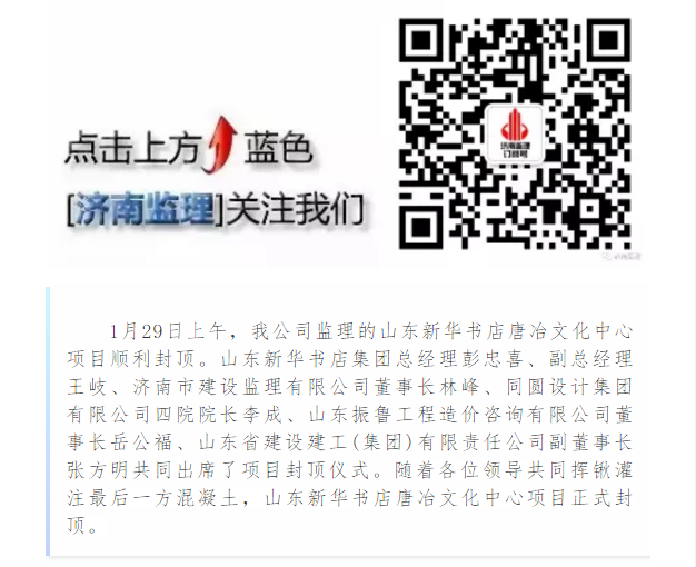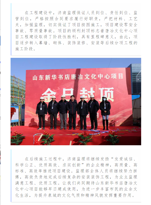 我公司监理的星空web版登录入口新华书店唐冶文化中心项目顺利封顶