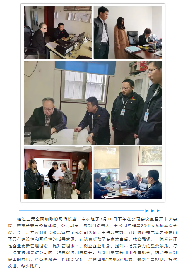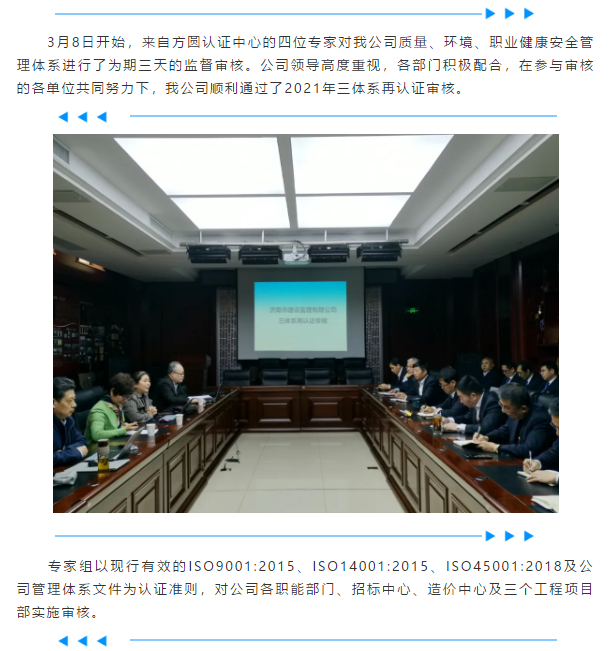 更新管理理念 提升管理水平 推进高质量发展——公司顺利通过2021年三体系再认证审核