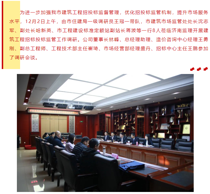 市住建局调研组莅临公司开展建筑工程招标投标监管工作调研