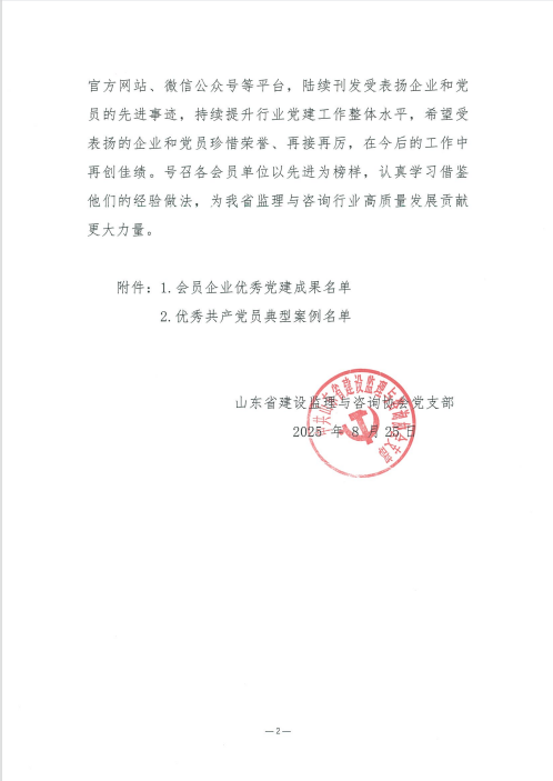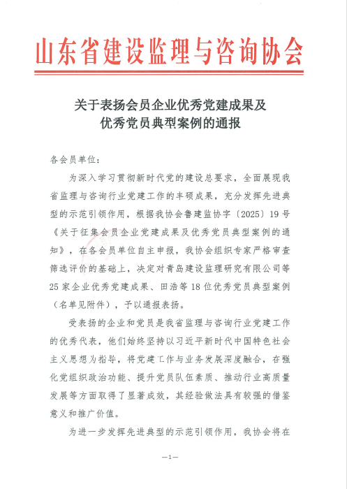 喜报!济南监理荣获星空web版登录入口省建设监理与咨询协会“会员优秀企业党建成果”及“优秀党员典型案例”通报表扬