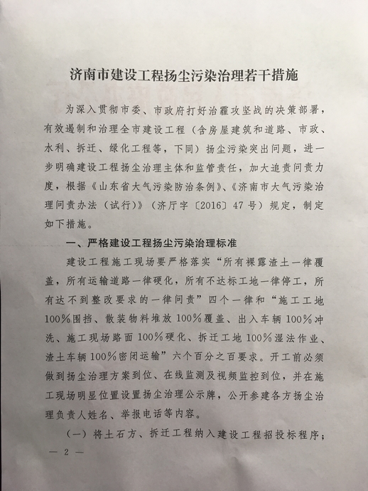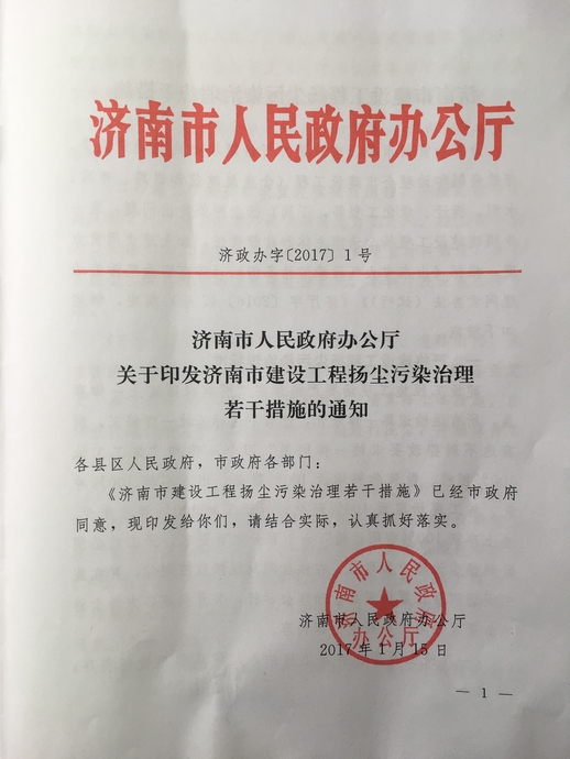 关于转发《济南市人民政府办公厅关于印发济南市建设工程扬尘污染治理若干措施》的通知