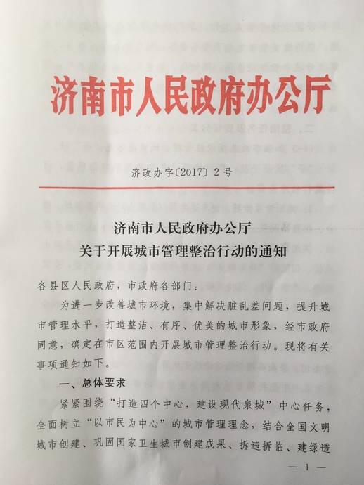 关于转发《济南市人民政府办公厅关于开展城市管理整治行动》的通知
